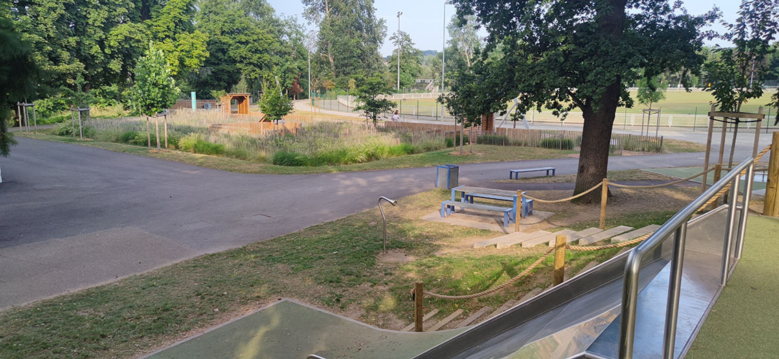 - Créer un lien avec le parc Bécot avec l’insertion de jeux dans la pente et la mise en place d’un labyrinthe végétal,