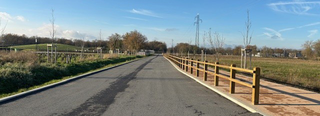 Réception des travaux d’aménagement de la zone d’activités de Valmy, pour le compte de Roannais Agglomération, avec aménagement de la voie de desserte principale doublée d’une voie modes actifs et gestion intégrée des eaux pluviales.