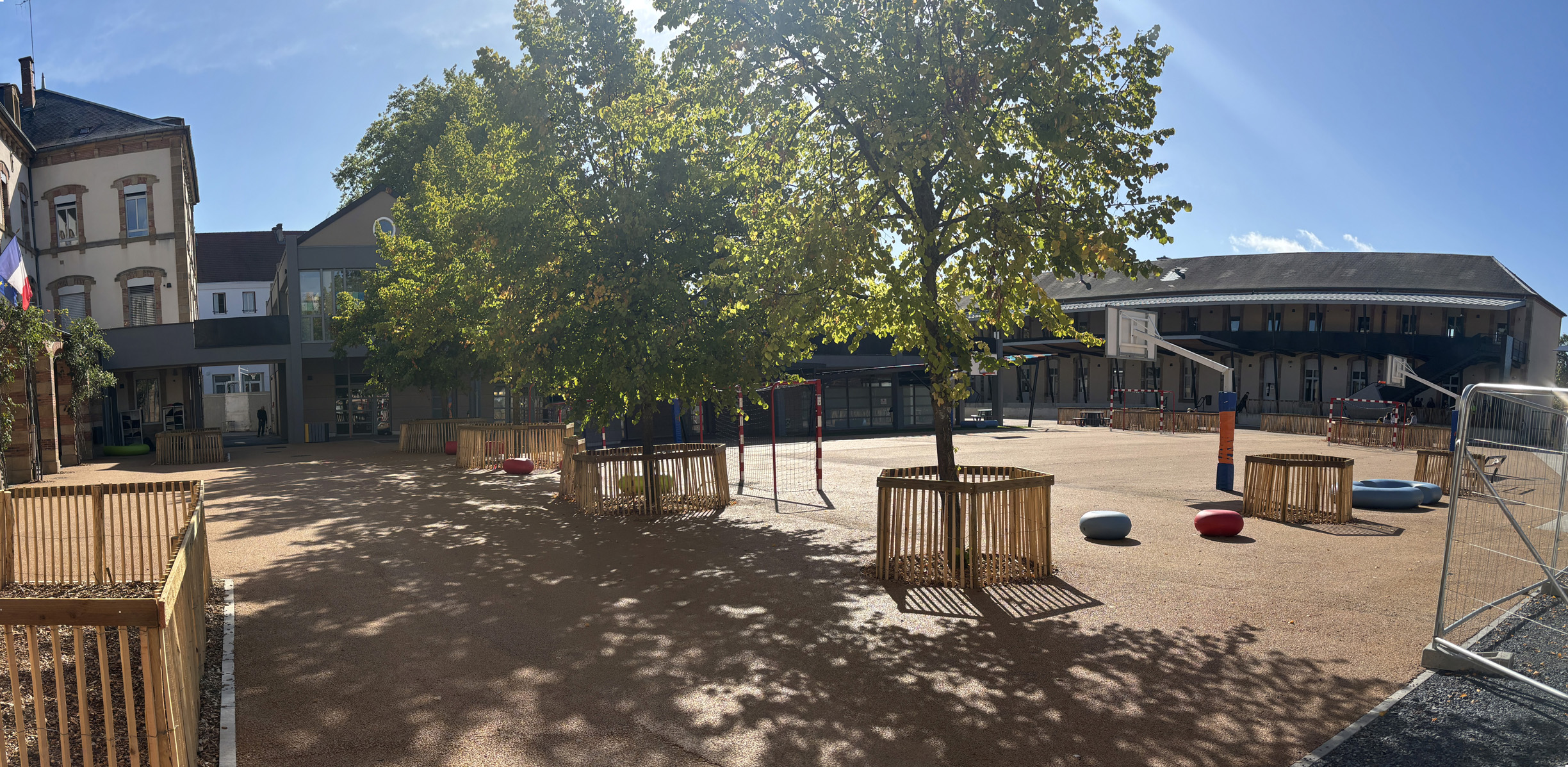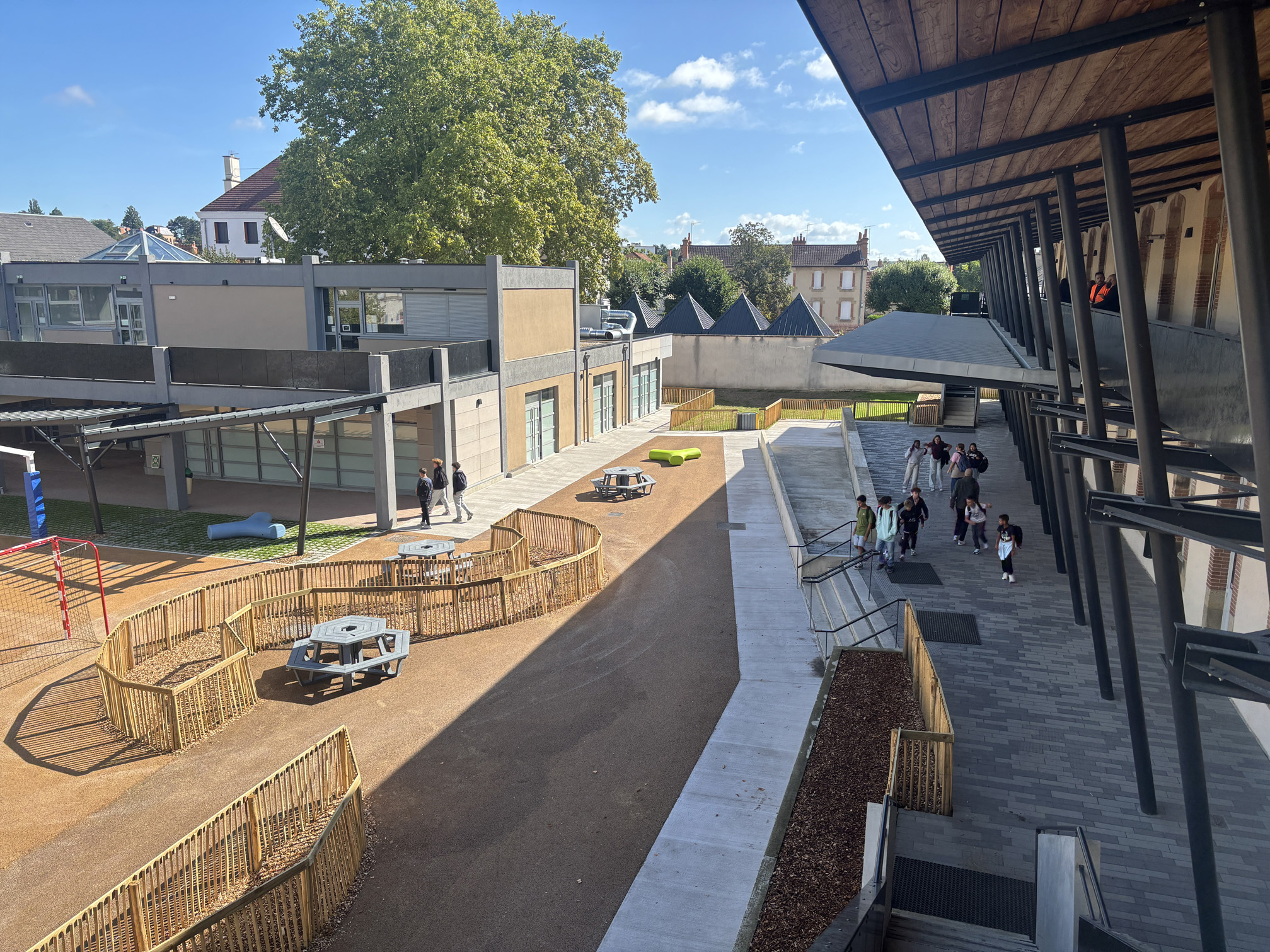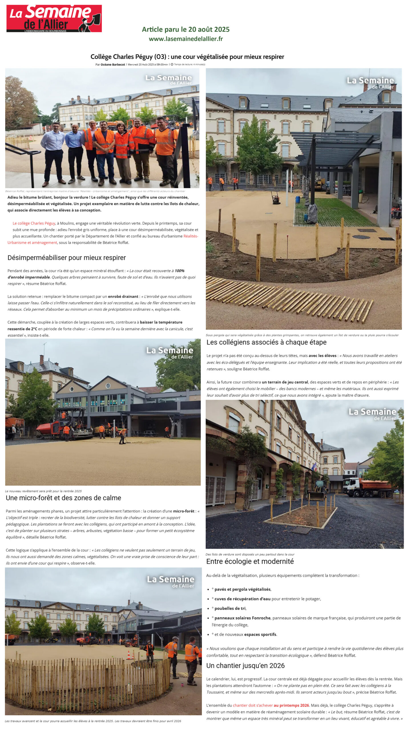 Réception en partie des travaux de renaturation de la cour du collège Charles Péguy à Moulins pour le compte du Département de l’Allier. Les plantations auront lieu en automne avec la participation des élèves.