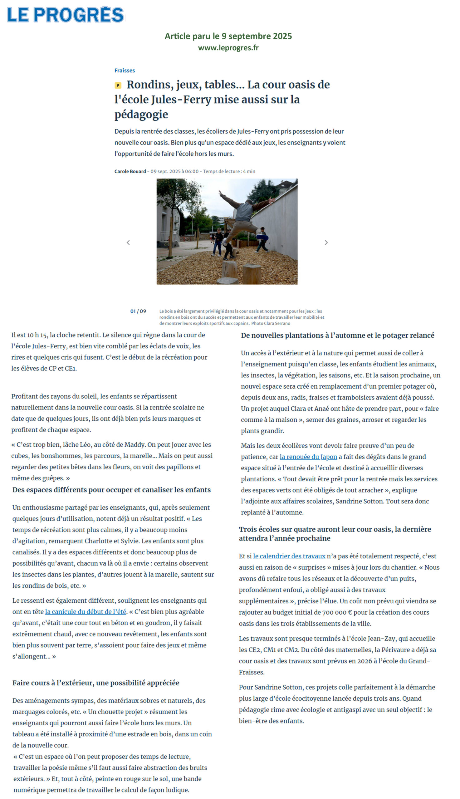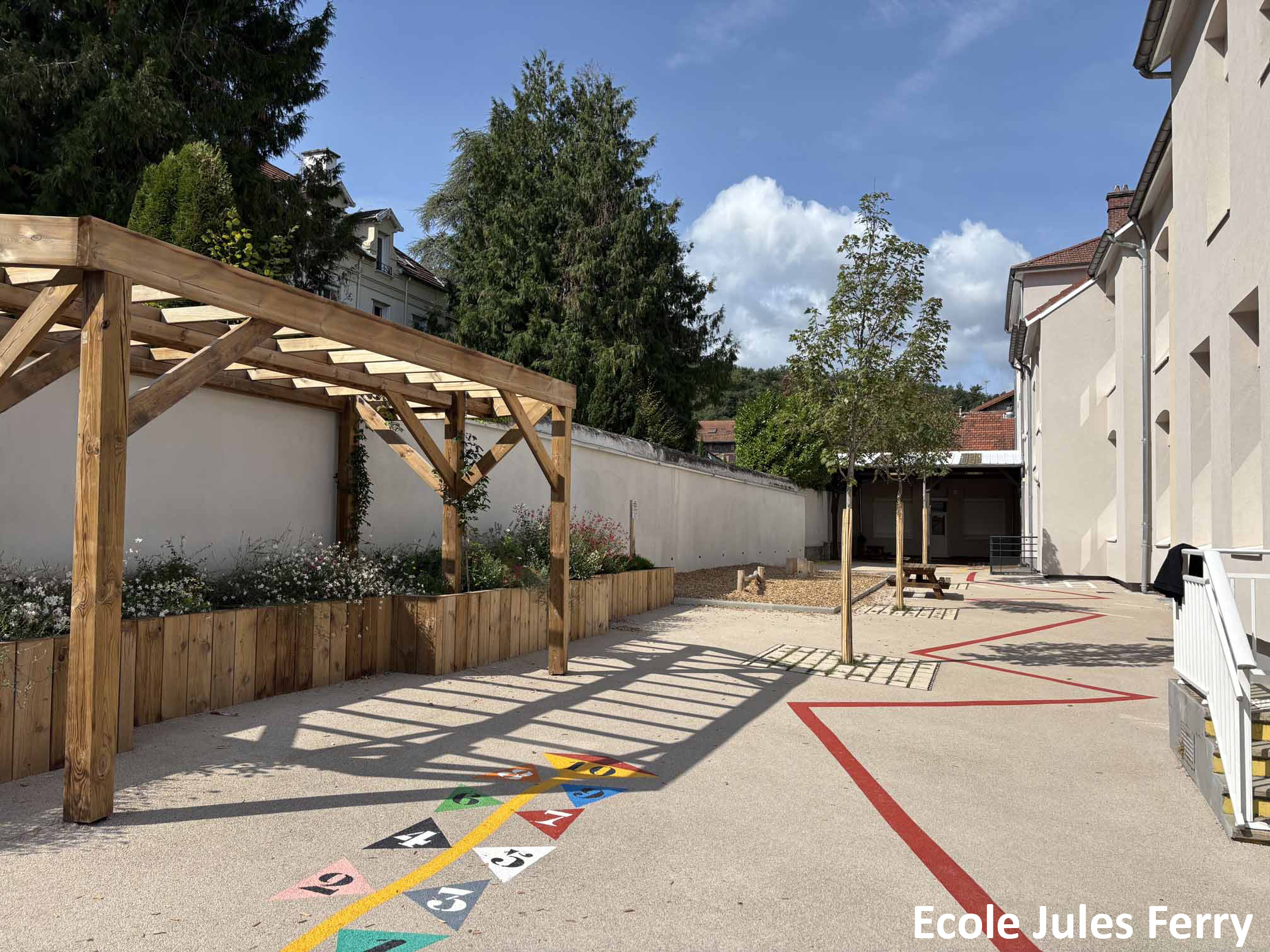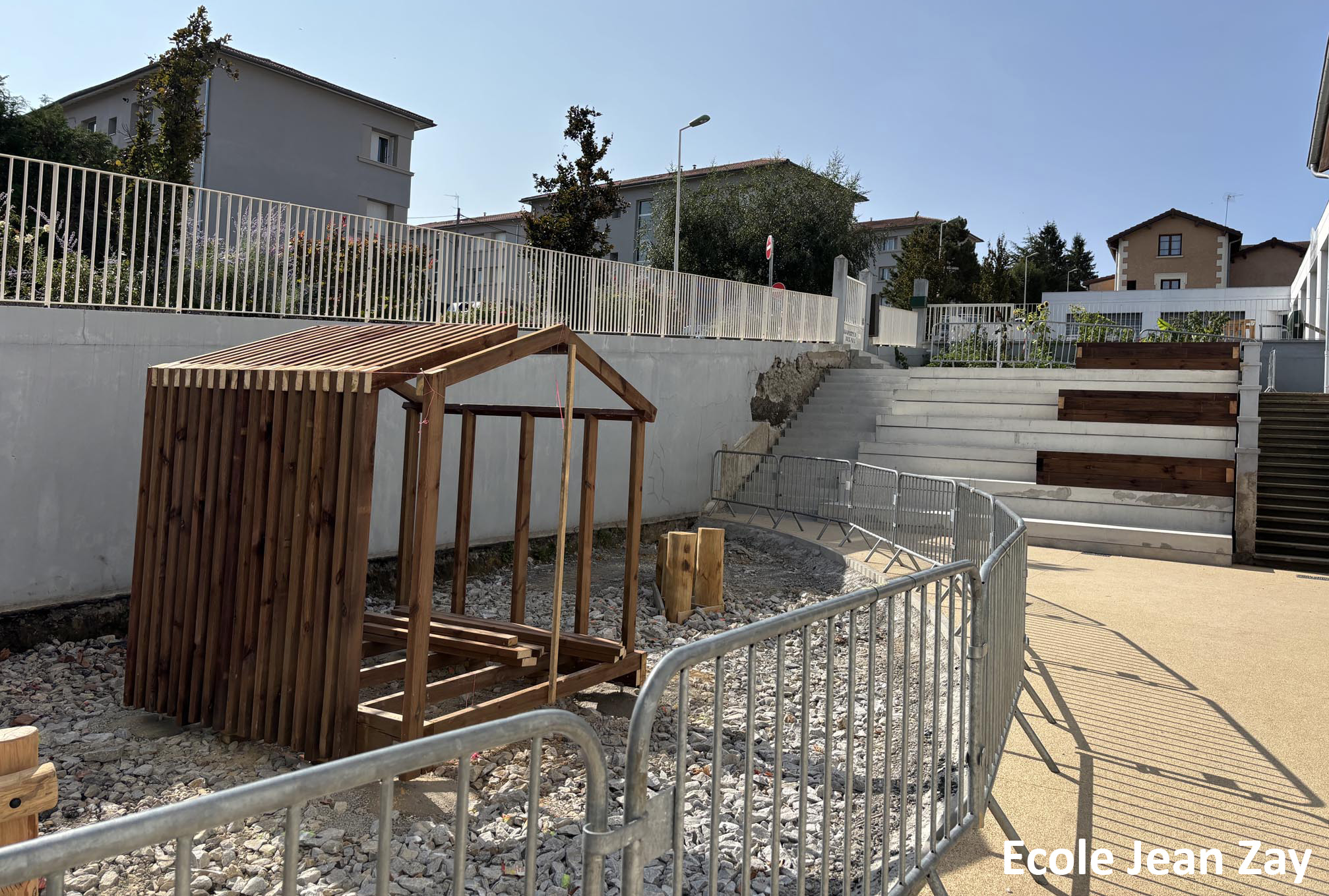 Réception des cours de l’école Jules Ferry et de l’école de la Périvaure, poursuite de l’aménagement des cours de l’école Jean Zay à Fraisses. Les plantations seront terminées à l’automne.