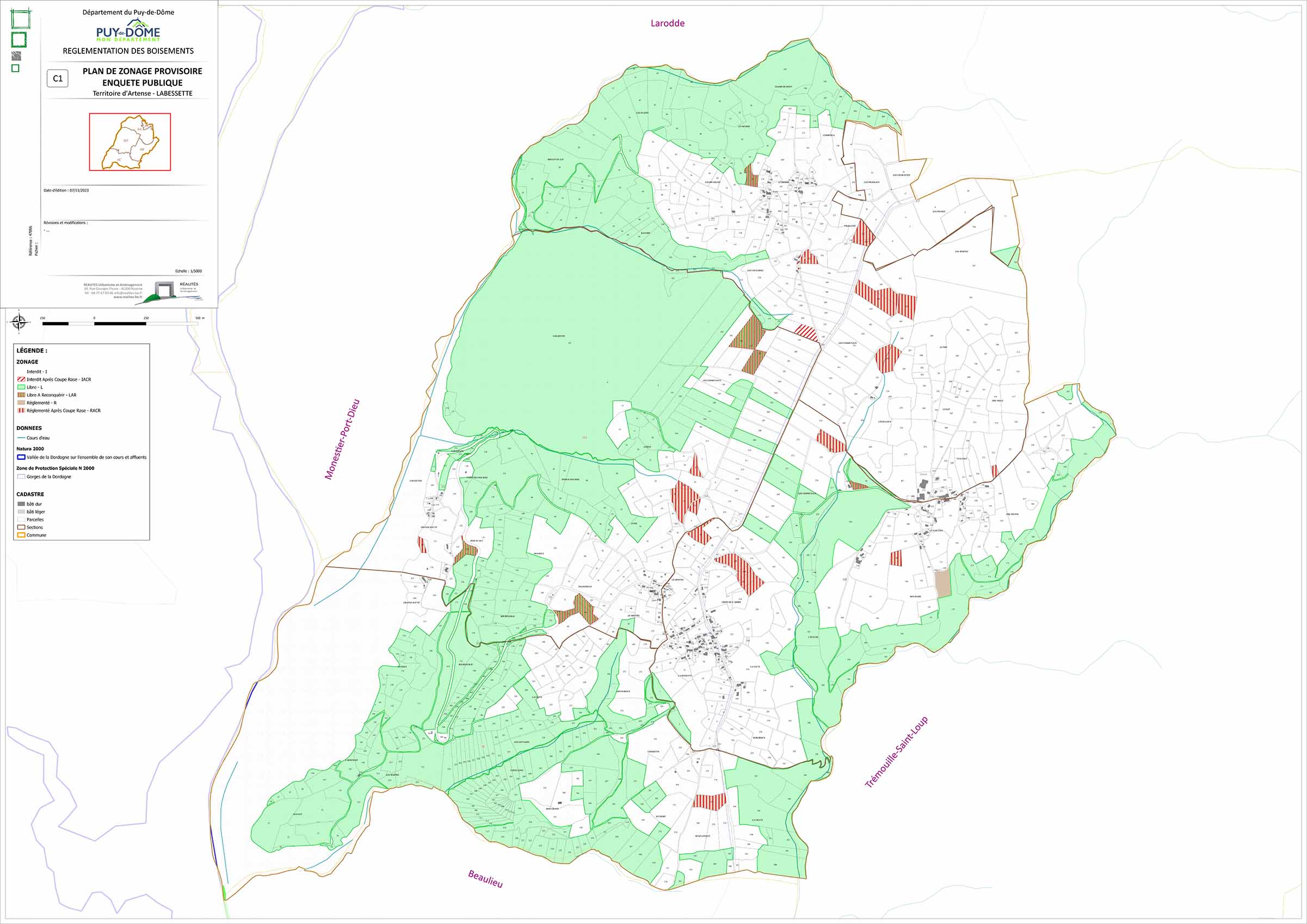 Le Département du Puy-de-Dôme nous a missionnés pour élaborer la réglementation des boisements sur un territoire de 21 171 hectares, couvrant 8 communes sur le secteur « ARTENSE » : Bagnols, Cros, La Tour d’Auvergne, Labessette, Larodde, Saint-Donat, Singles et Trémouille-Saint-Loup.